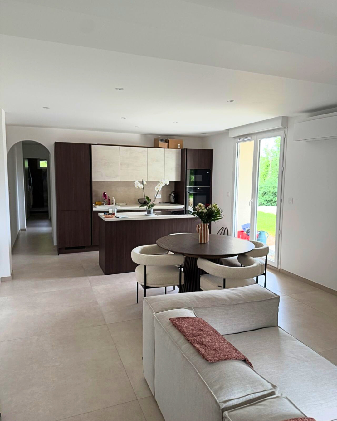 Reconfiguration des espaces, rénovation des sols, création d’une cuisine haut de gamme et finitions soignées : un intérieur totalement repensé pour conjuguer confort, modernité et optimisation de chaque mètre carré.